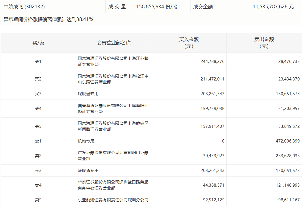 相关阅读中航成飞今日20%涨停,一家机构专用席位净卖出2.13亿元