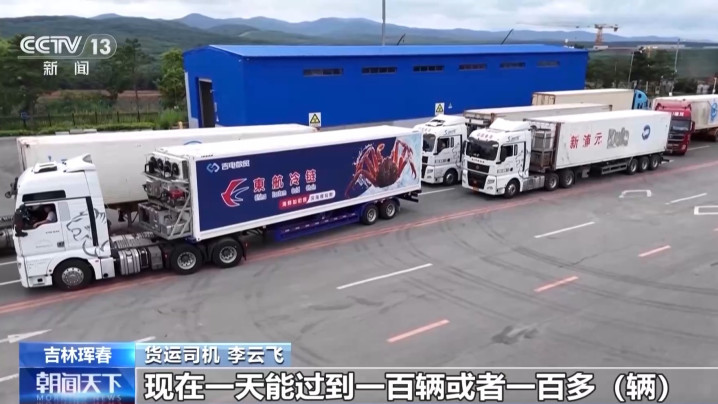 总台央视记者唐颖:随着珲春口岸的开关,从俄罗斯运输海鲜的车辆正在这里进行通关手续的办理,20个小时以内,这些海鲜就将通过公路运输送抵北京和上海等地。