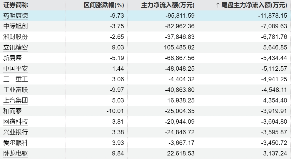 156 04-13 19:30主力今日尾盘买卖这些个股
