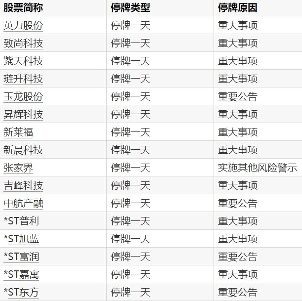 0 05-19 16:37A股停牌提示:16股今日停牌
